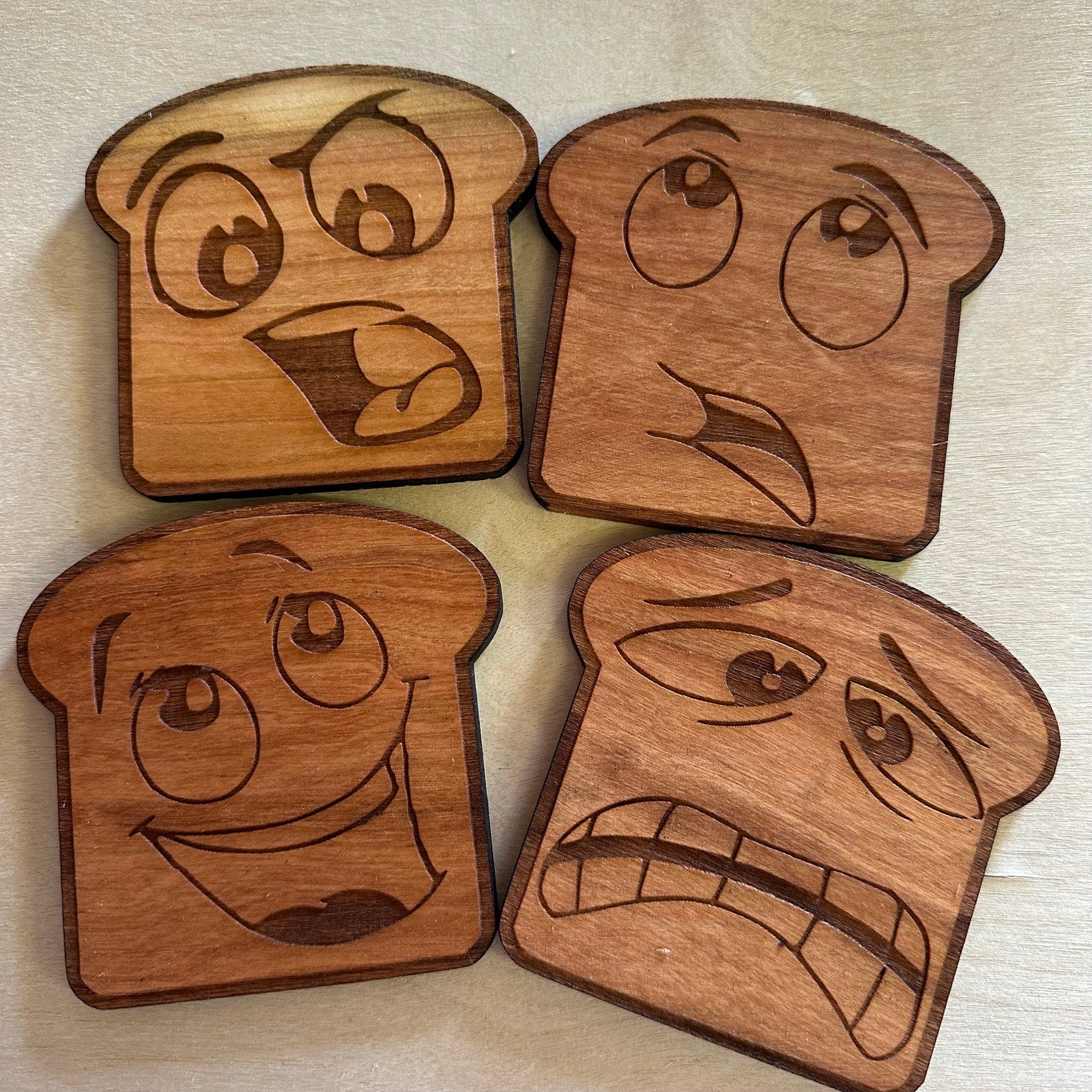 Laser cut and engraved, primarily made from red oak, cherry, maple, and black walnut woods. The listing photos are of Cherry coasters.