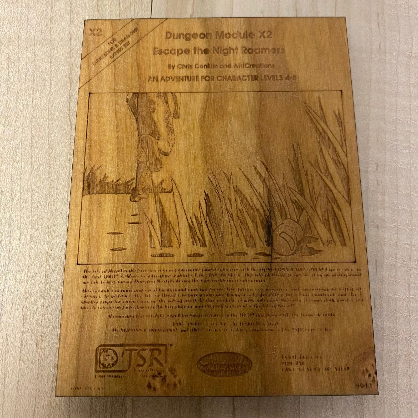 Maple - Very Light wood, Engraves with black grey char.